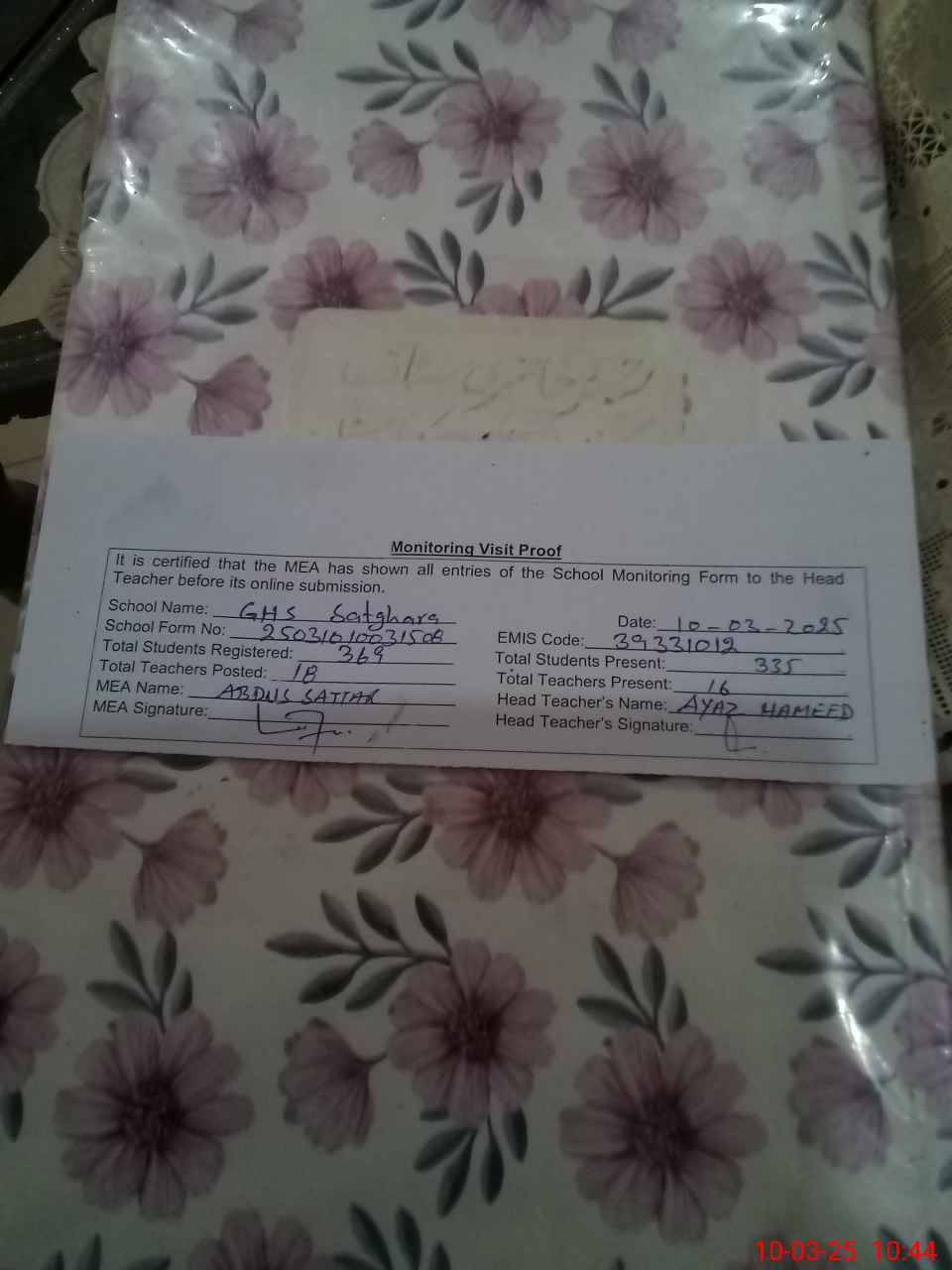 | EMIS Code: 39331012 | Name of School: GHS SATGARHA | |||