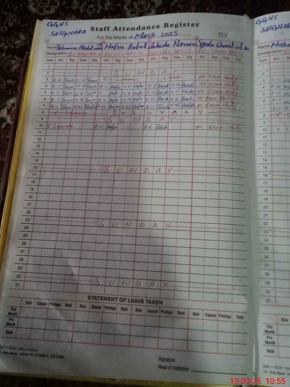 | 35**** | Sh**** Ak**** | Regular | 0 | 0 | 0 | 0 | 0 | 0 | 0 | 0 | 0 | Exam Duty | |