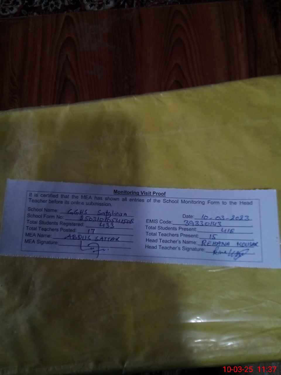 | EMIS Code: 39330143 | Name of School: GGHS SATGHARA | |||