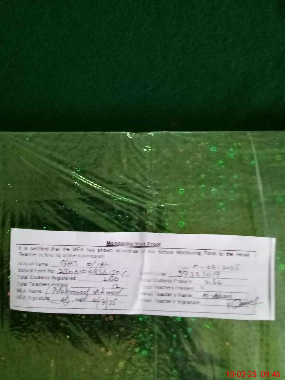 | EMIS Code: 39331019 | Name of School: GHS CHAK 10/1-AL | |||