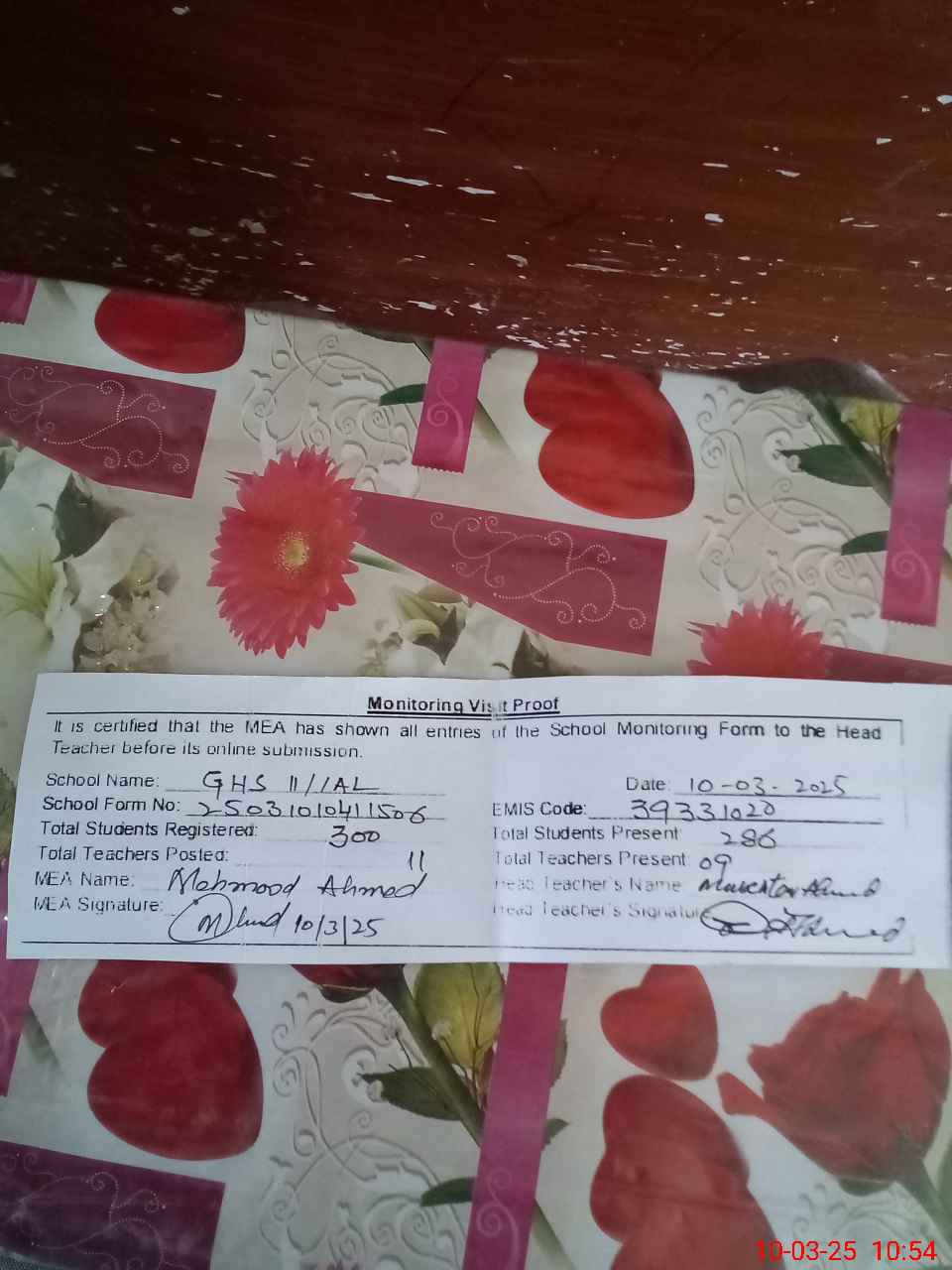 | Certified that this School was Inspected by the Undersigned MEA/DMO Today and the Information Stated Above is as Per Record. | |||||