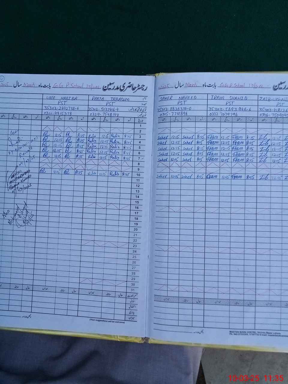 | CNIC | Full Name | Designation | R/C | Absence During Last Calender Month |