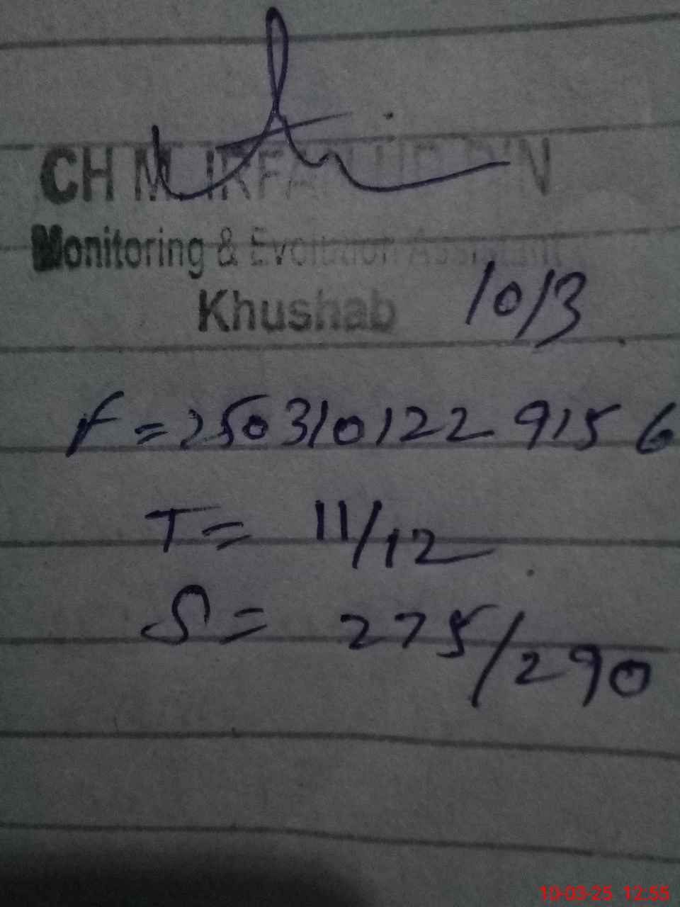| District: KHUSHAB | Tehsil: NAUSHERA | Markaz: UCHHALI (FEMALE) | Level: High | |