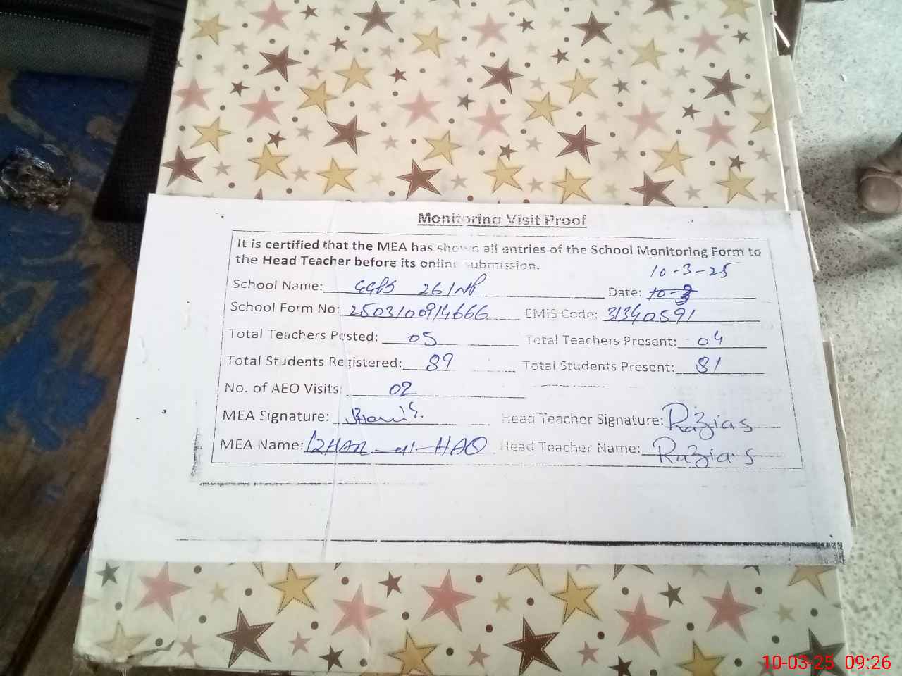 | EMIS Code: 31340591 | Name of School: GGPS CHAK NO. 26/NP | |||