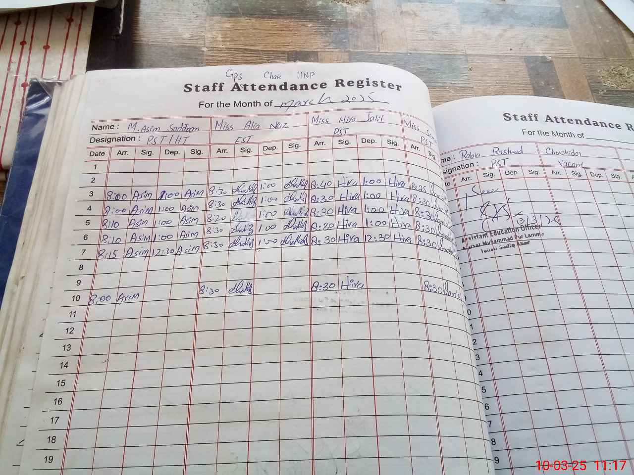 | Name: M.**** Sa**** Designation: (School Headmaster's/Headmistress's) PST Phone/Cell Number: 03**** |