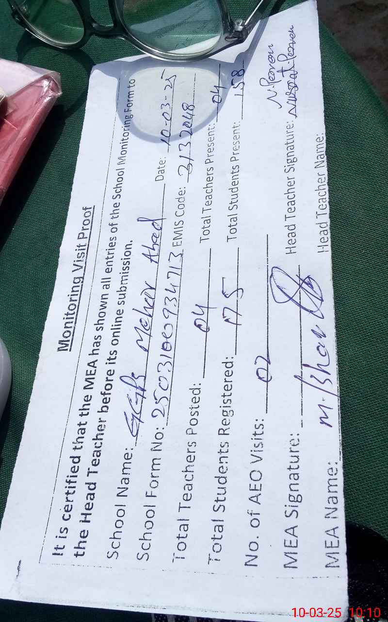 | EMIS Code: 31320480 | Name of School: GGPS MEHAR ABAD KACHI MANDI | |||