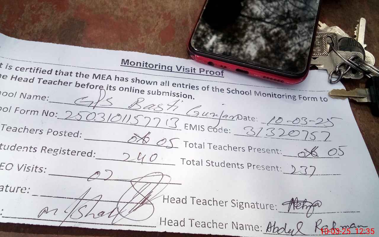 | Name: Ab**** Re**** Designation: (School Headmaster's/Headmistress's) PST Phone/Cell Number: 03**** |