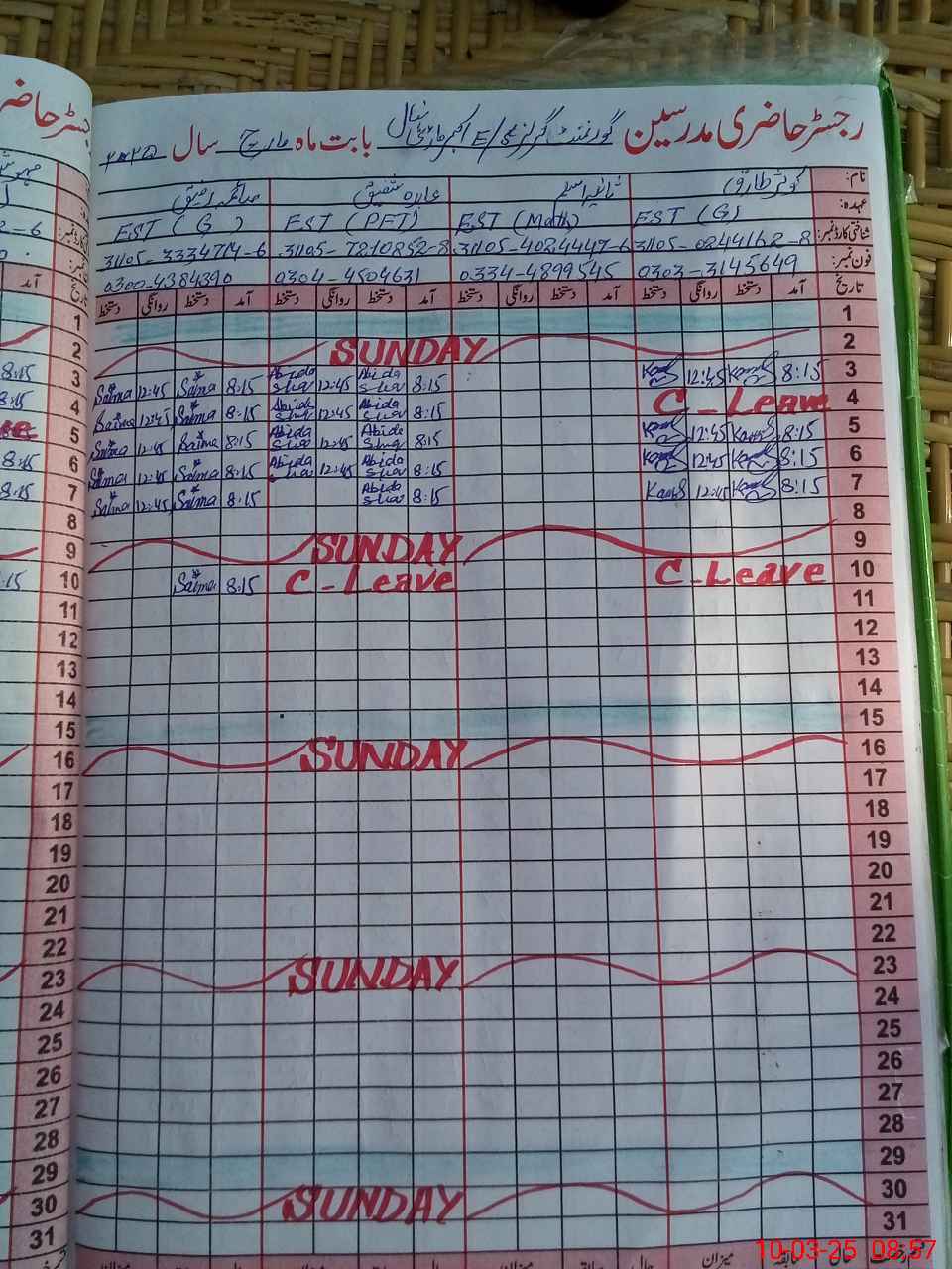 | 31**** | Sh**** Al**** Di**** | 3 | 1 | 0 | 0 | 0 | 0 | 0 | 0 | 0 | 0 | 0 | Absent (Un-Authorized) |