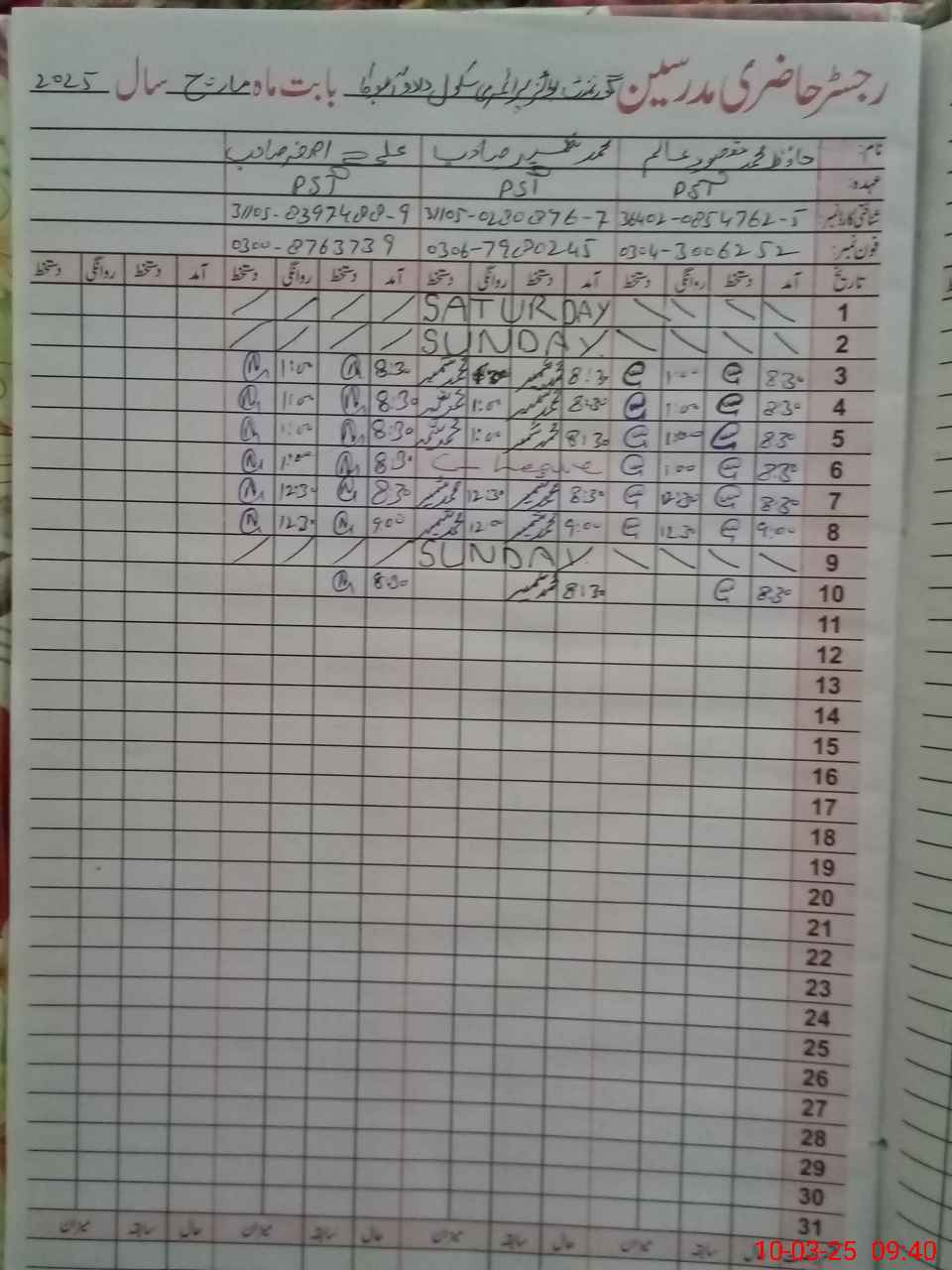 | Name: Ha**** MMa**** Al**** Designation: (School Headmaster's/Headmistress's) PST Phone/Cell Number: 03**** |