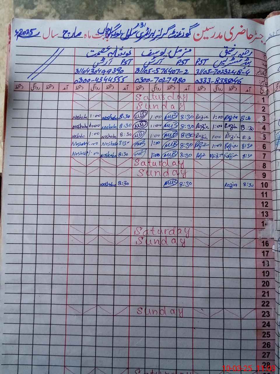| Name: RA**** RA**** Designation: (School Headmaster's/Headmistress's) PST Phone/Cell Number: 03**** |