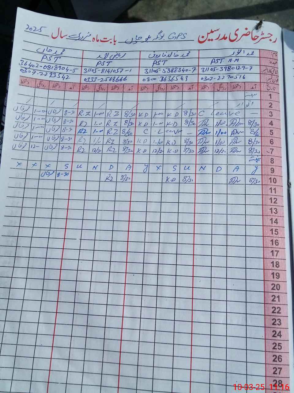 | Name: MU**** AN**** Designation: (School Headmaster's/Headmistress's) PST Phone/Cell Number: 03**** |
