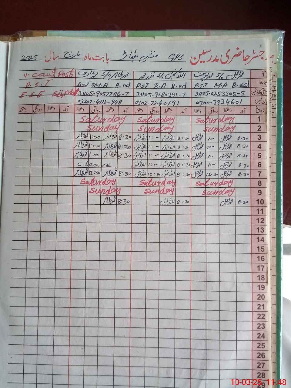 | Name: Mu**** Aj**** Designation: (School Headmaster's/Headmistress's) PST Phone/Cell Number: 03**** |
