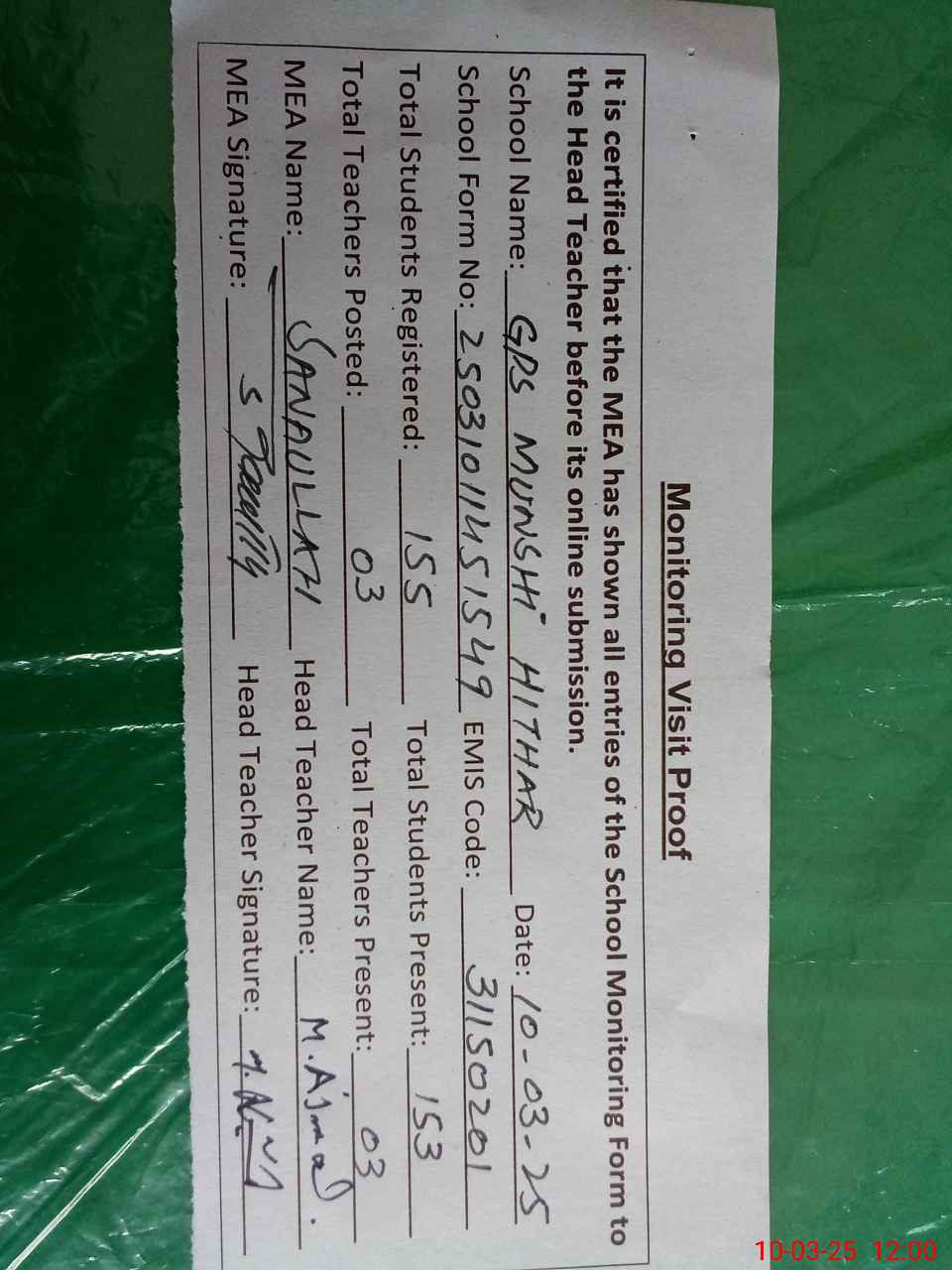 | EMIS Code: 31150201 | Name of School: GPS MUNSHI HITTAR | |||