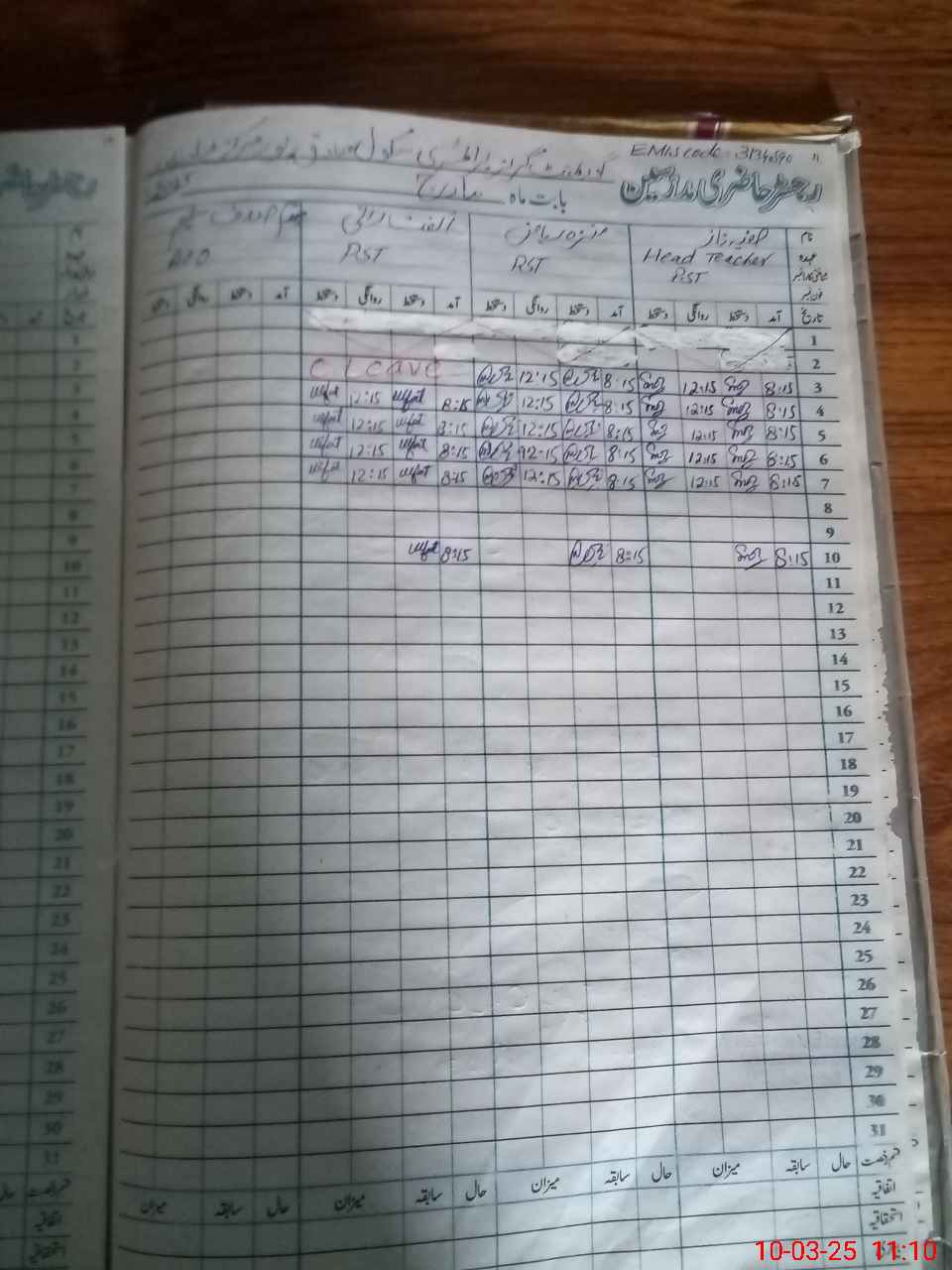 | CNIC | Full Name | Designation | R/C | Absence During Last Calender Month |
