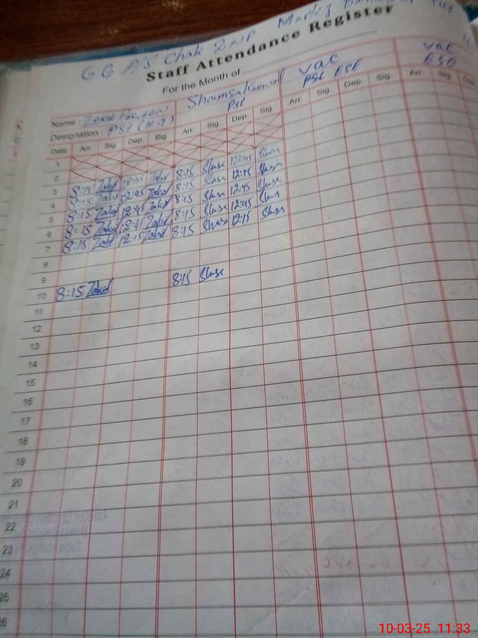 | Name: Za**** Pa**** Designation: (School Headmaster's/Headmistress's) PST Phone/Cell Number: 03**** |