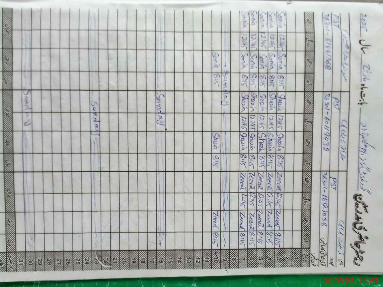 | Name: Ze**** Bi**** Designation: (School Headmaster's/Headmistress's) PST Phone/Cell Number: 03**** |