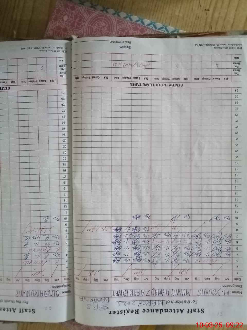 | Name: Mu**** Ah**** Designation: (School Headmaster's/Headmistress's) PTC/JV Phone/Cell Number: 03**** |