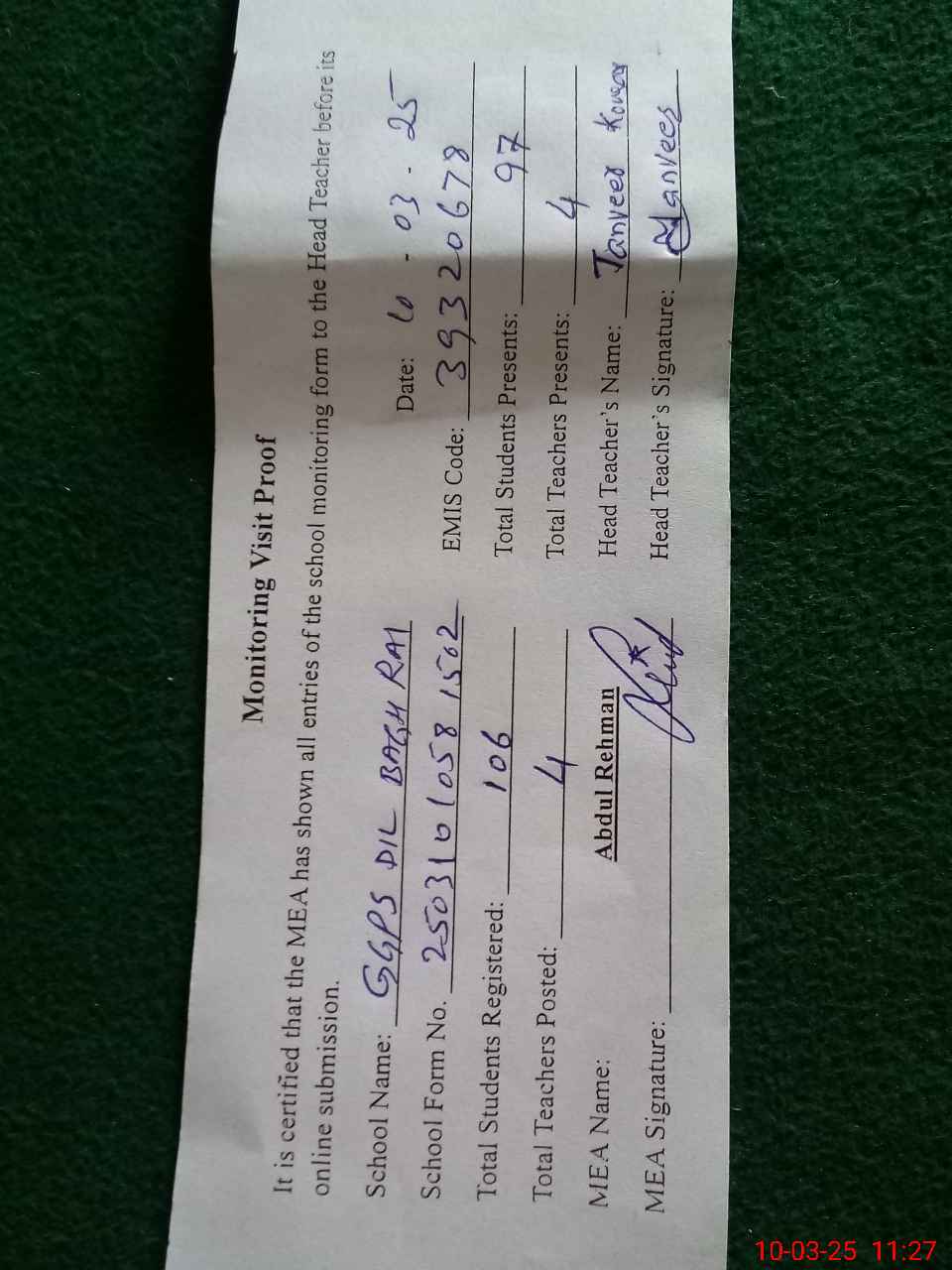 | EMIS Code: 39320678 | Name of School: GGPS DIL BAGH RAI | |||