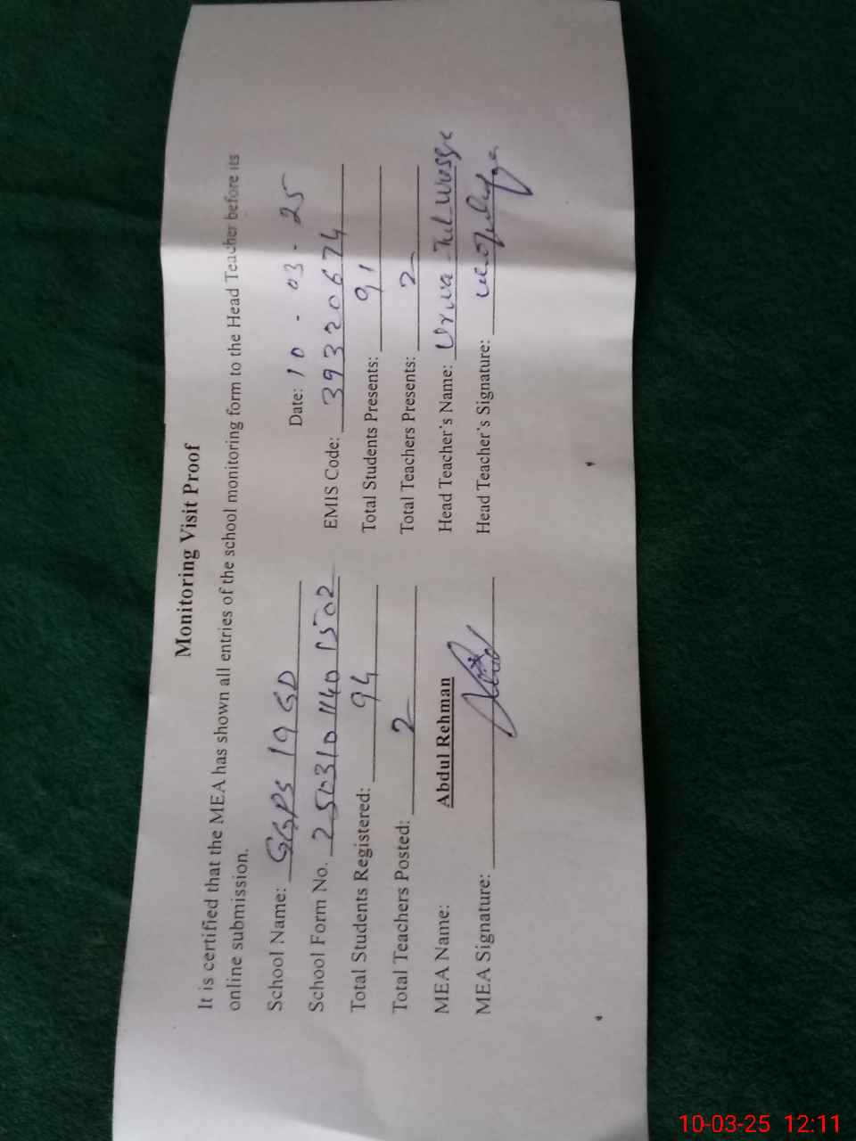 | EMIS Code: 39320674 | Name of School: GGPS 19/G.D | |||