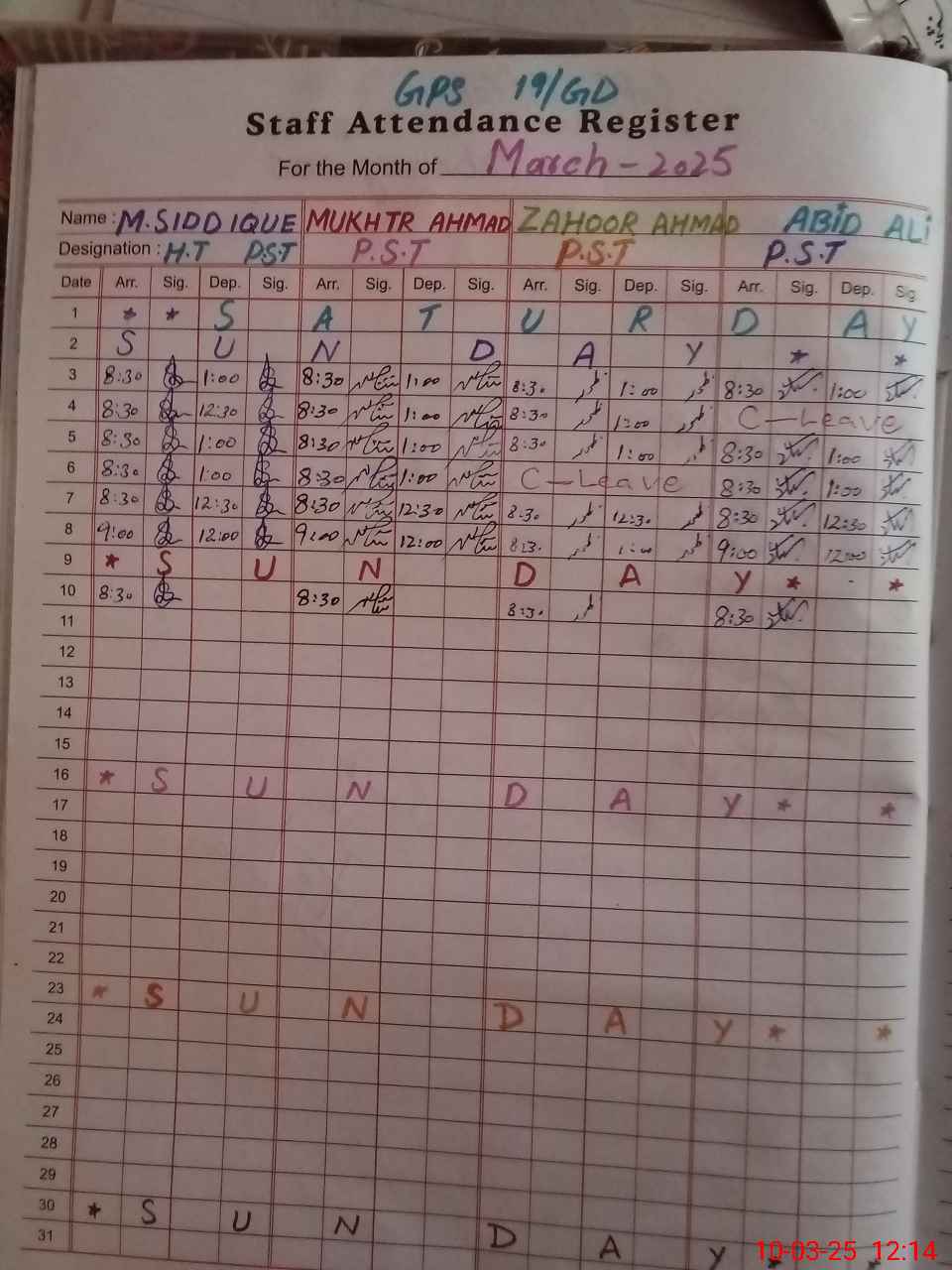 | Name: MU**** Si**** Designation: (School Headmaster's/Headmistress's) PST HM Phone/Cell Number: 03**** |