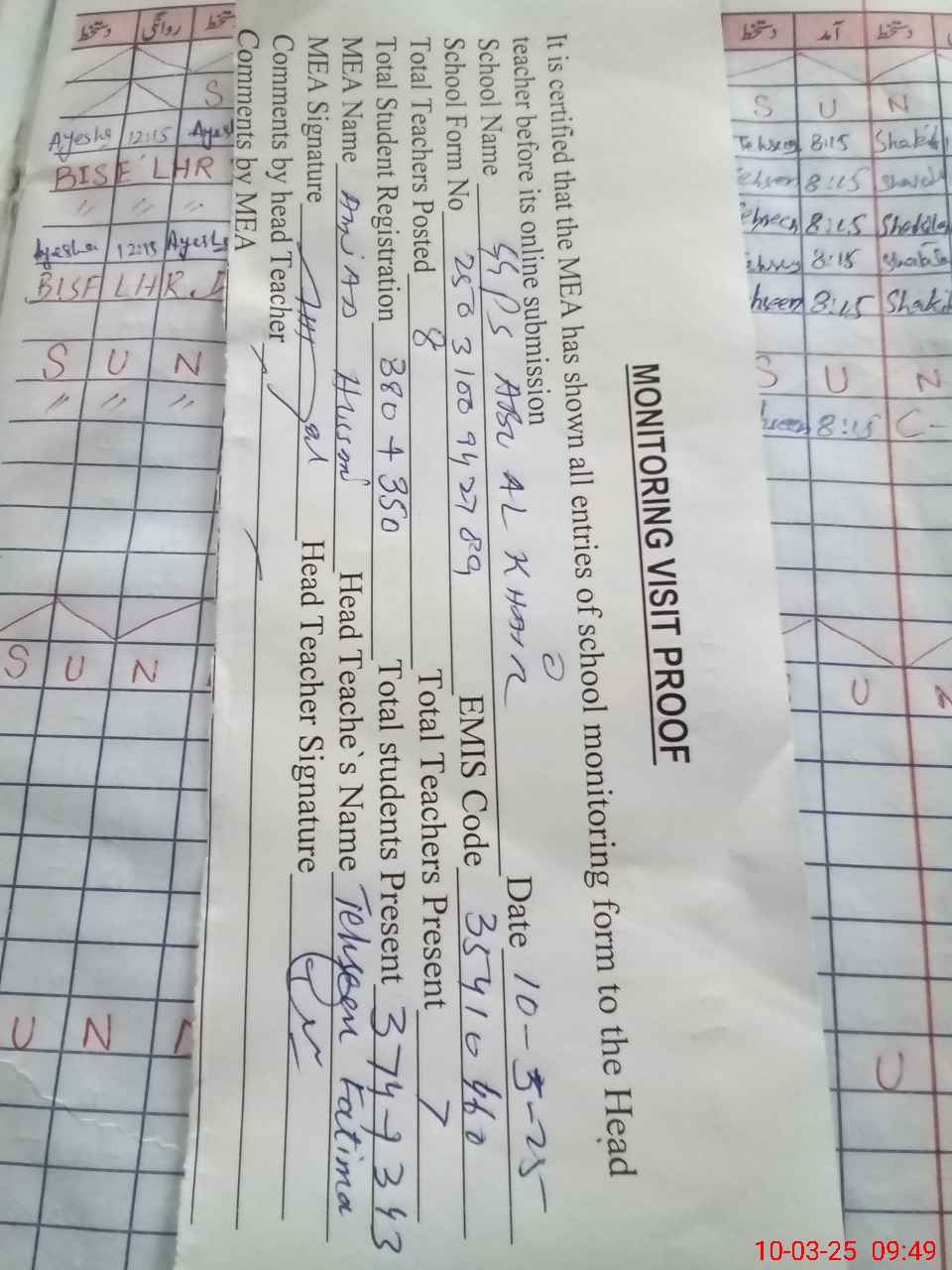 | Certified that this School was Inspected by the Undersigned MEA/DMO Today and the Information Stated Above is as Per Record. | |||||