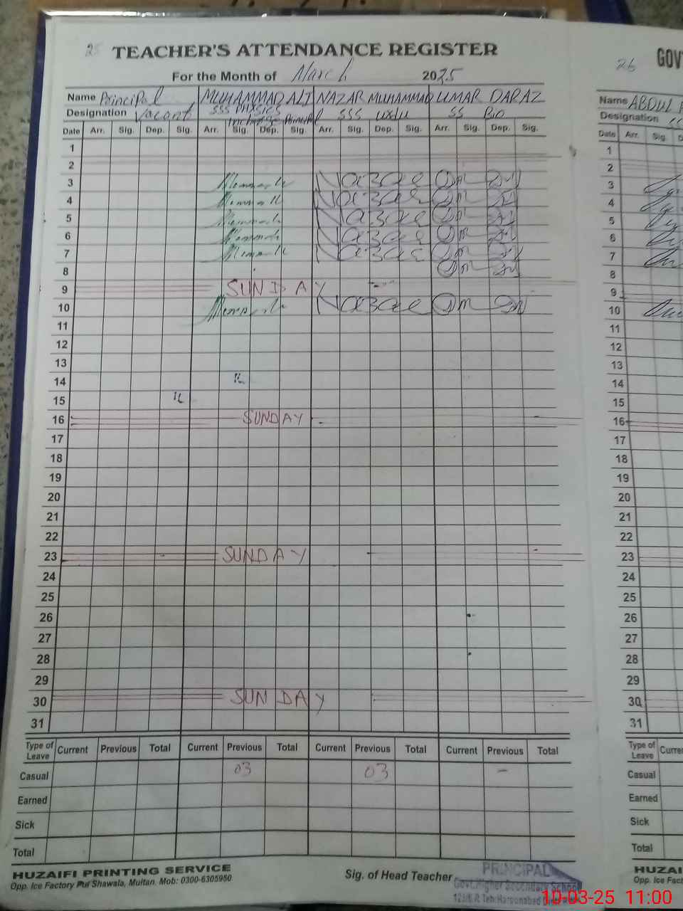 | Name: Mu**** Al**** Designation: (School Headmaster's/Headmistress's) PRINCIPAL Phone/Cell Number: 03**** |