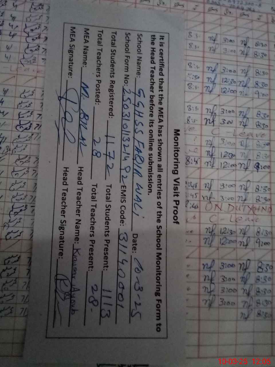 | EMIS Code: 31140001 | Name of School: GGHSS FAQIR WALI | |||