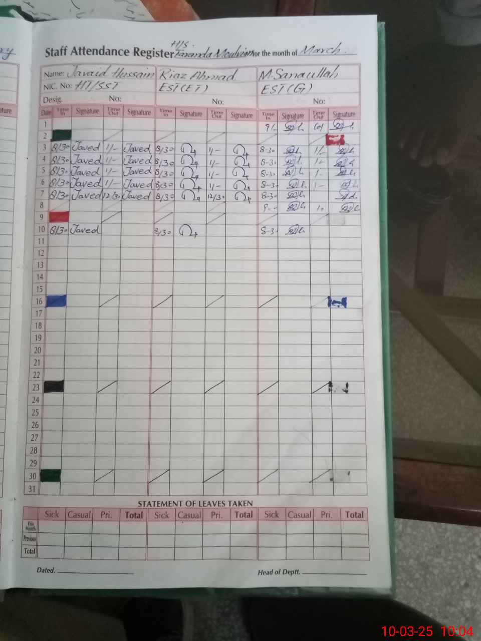 | 31**** | Ha**** Ul**** | Regular | 3 | 0 | 0 | 0 | 0 | 0 | 0 | 0 | 3 | Casual | |