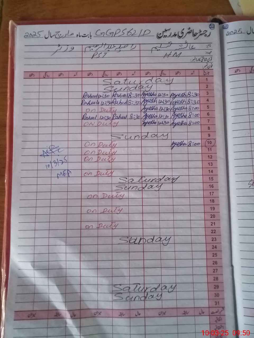 | 36**** | Ra**** Ab**** Ra**** | PST | Regular | 3 | 0 | 0 | 0 | 0 | 0 | 0 | 0 | 3 | Exam Duty |