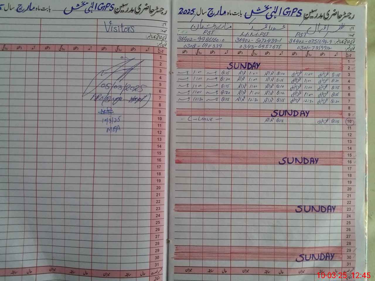 | Name: Mu**** Ah**** Designation: (School Headmaster's/Headmistress's) PST Phone/Cell Number: 03**** |
