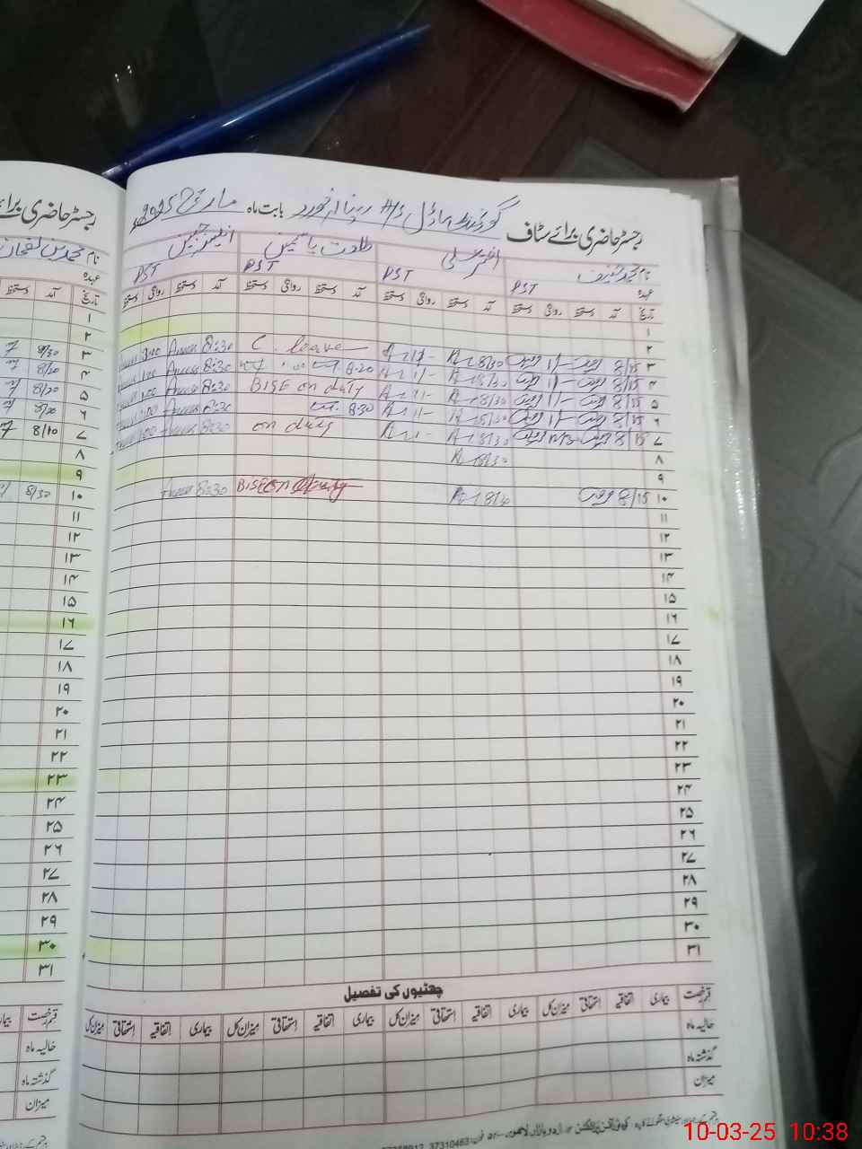| 35**** | Um**** Ma**** | PST | Regular | 2 | 0 | 0 | 0 | 0 | 0 | 0 | 0 | 2 | Exam Duty |