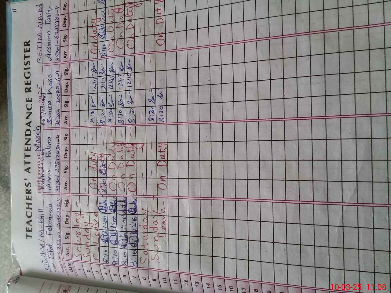 | 35**** | Ar**** Ta**** | Regular | 2 | 0 | 0 | 0 | 0 | 0 | 0 | 0 | 2 | Exam Duty | |