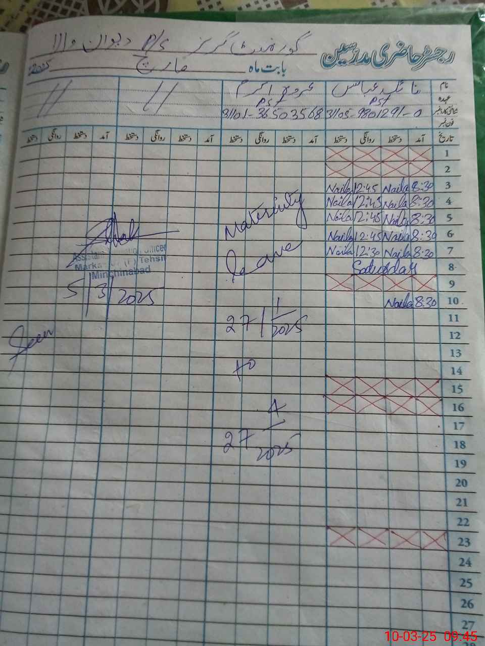 | 31**** | Ur**** Ak**** | 2 | 28 | 0 | 0 | 28 | 0 | 0 | 0 | 0 | 0 | Maternity | |