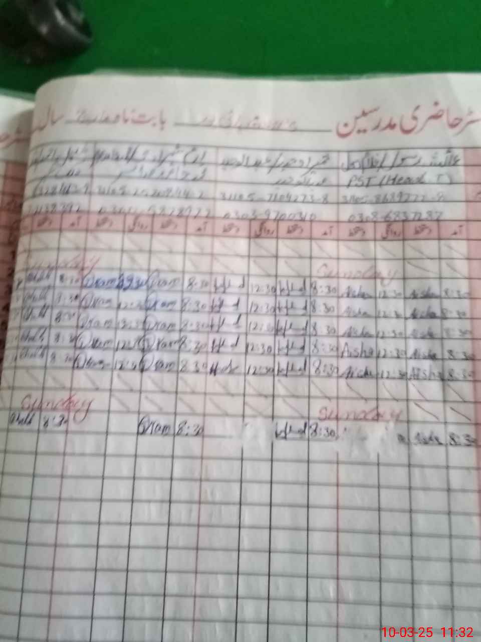 | Name: Ay**** Ra**** Designation: (School Headmaster's/Headmistress's) PST Phone/Cell Number: 03**** |