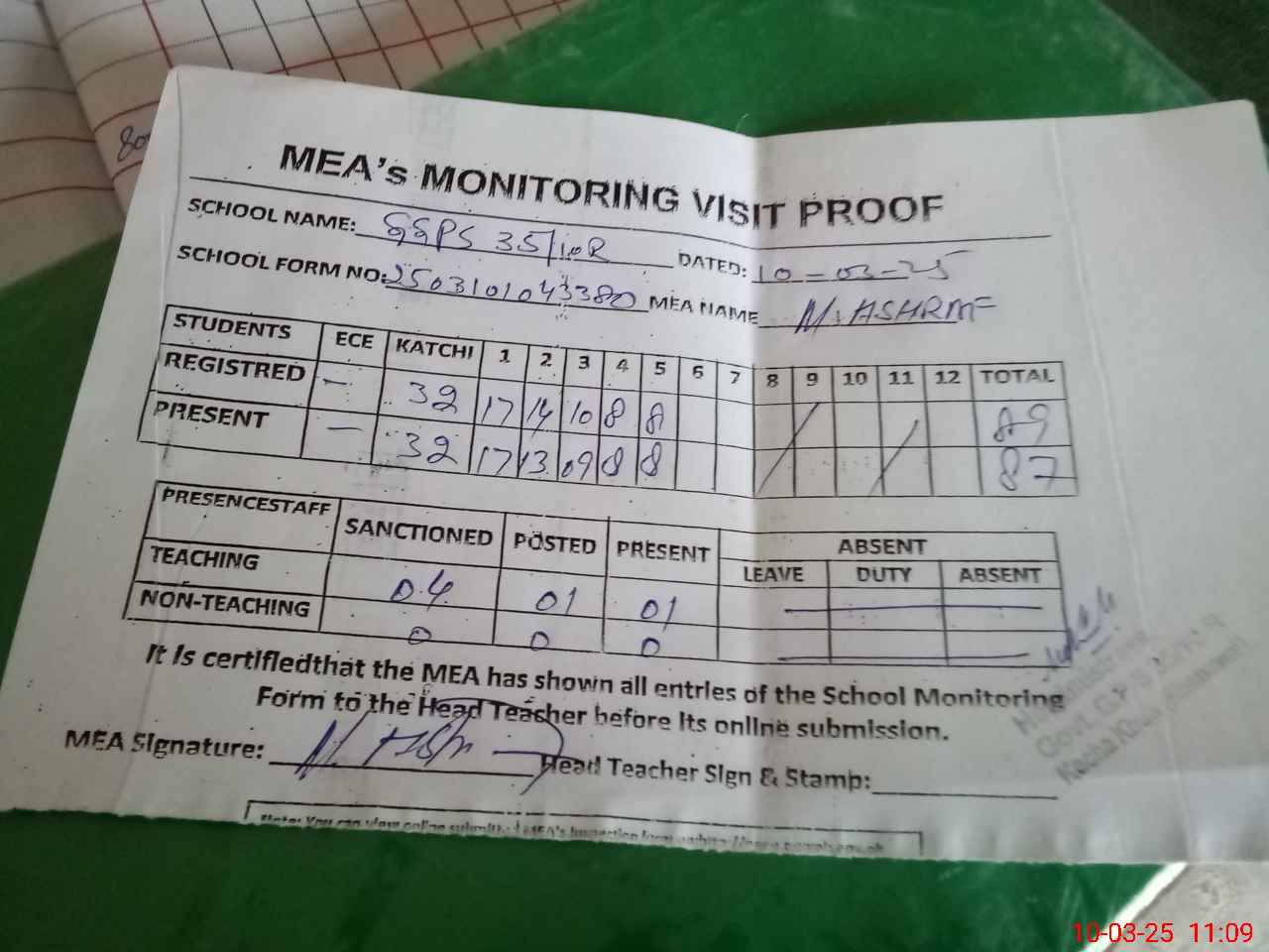 | EMIS Code: 36420473 | Name of School: GGPS 35/10-R, KACHA KHUH | |||