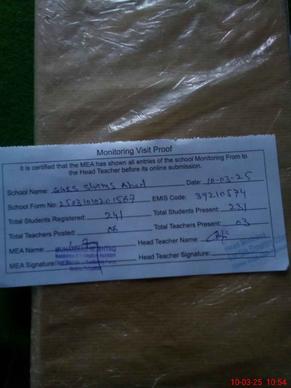 | Certified that this School was Inspected by the Undersigned MEA/DMO Today and the Information Stated Above is as Per Record. | |||||
