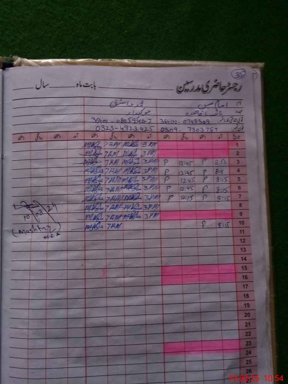| 36**** | Sa**** Iq**** | SST | Regular | 0 | 0 | 0 | 0 | 0 | 0 | 0 | 0 | 0 | Exam Duty |