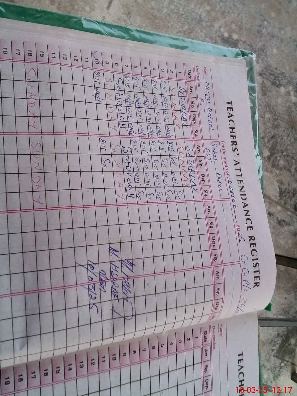 | Name: Na**** Ba**** Designation: (School Headmaster's/Headmistress's) PST Phone/Cell Number: 03**** |