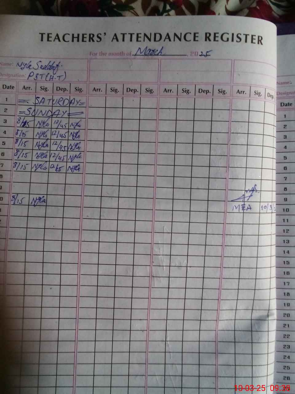 | Monitoring Date: 10-03-2025 | Start Time: 10-03-2025 09:11 AM | End Time: 10-03-2025 09:41 AM | Name of MEA: AB**** RA**** | |