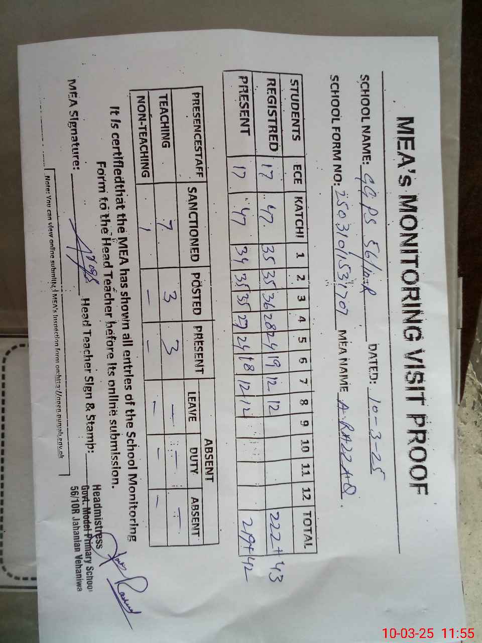 | EMIS Code: 36440523 | Name of School: GGPS 56/10-R, JAHANIAN | |||