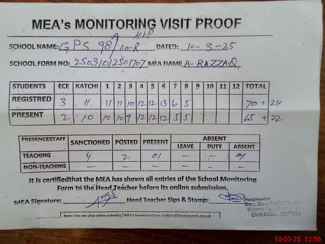 | EMIS Code: 36440323 | Name of School: GPS 98-A/10-R, JAHANIAN | |||