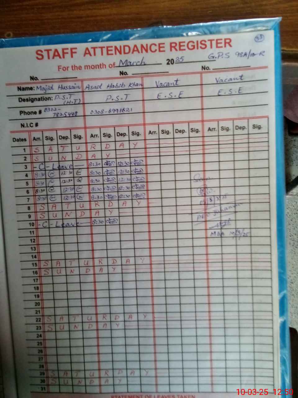 | Name: SH**** RA**** Designation: (School Headmaster's/Headmistress's) PST Phone/Cell Number: 03**** |