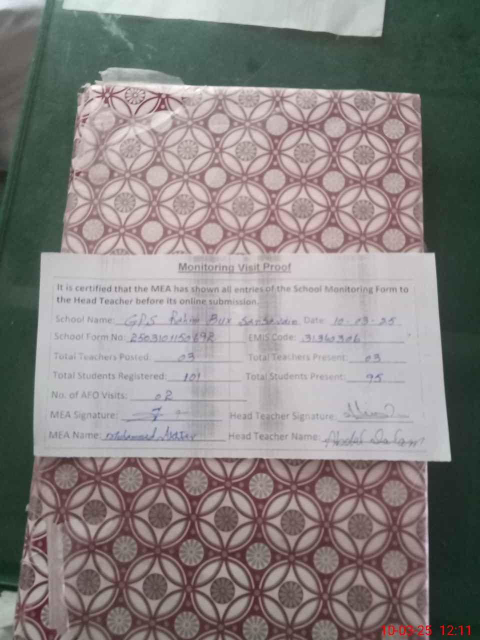 | EMIS Code: 31340306 | Name of School: GPS RAHIM BUX SANSARAIN | |||