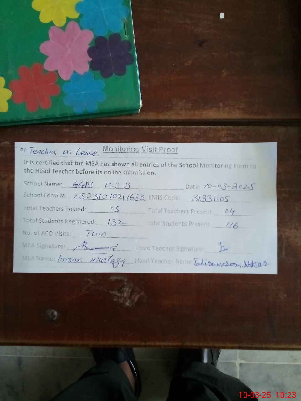 | EMIS Code: 31331105 | Name of School: GGPS 123 B | |||