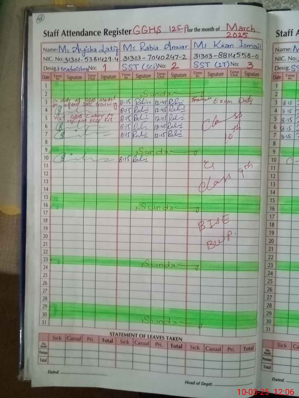 | 31**** | Ki**** Is**** | Regular | 1 | 1 | 0 | 0 | 0 | 0 | 0 | 0 | 1 | Exam Duty | |