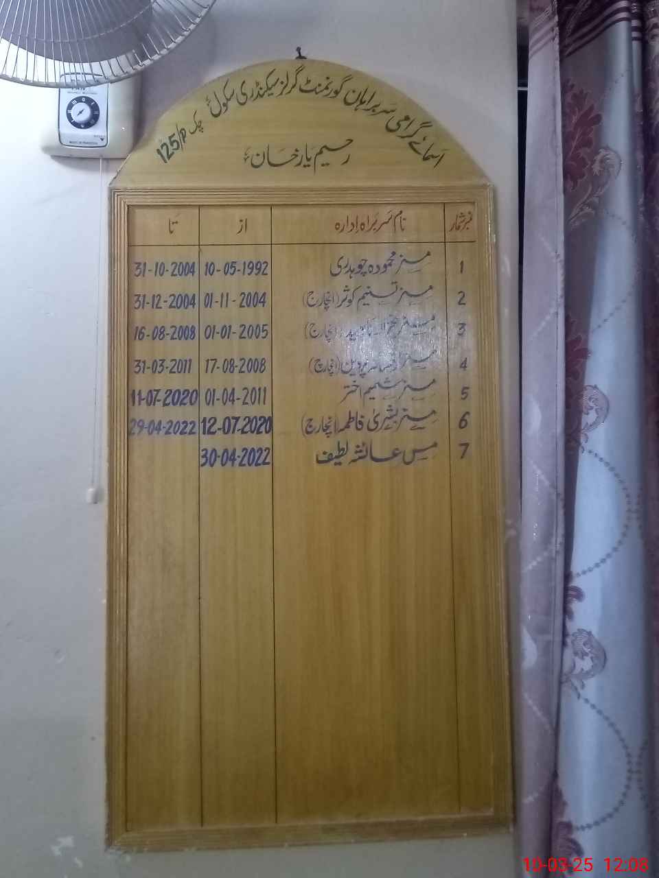 | District: RAHIMYAR KHAN | Tehsil: RAHIMYAR KHAN | Markaz: SECONDARY-WING | Level: High | |