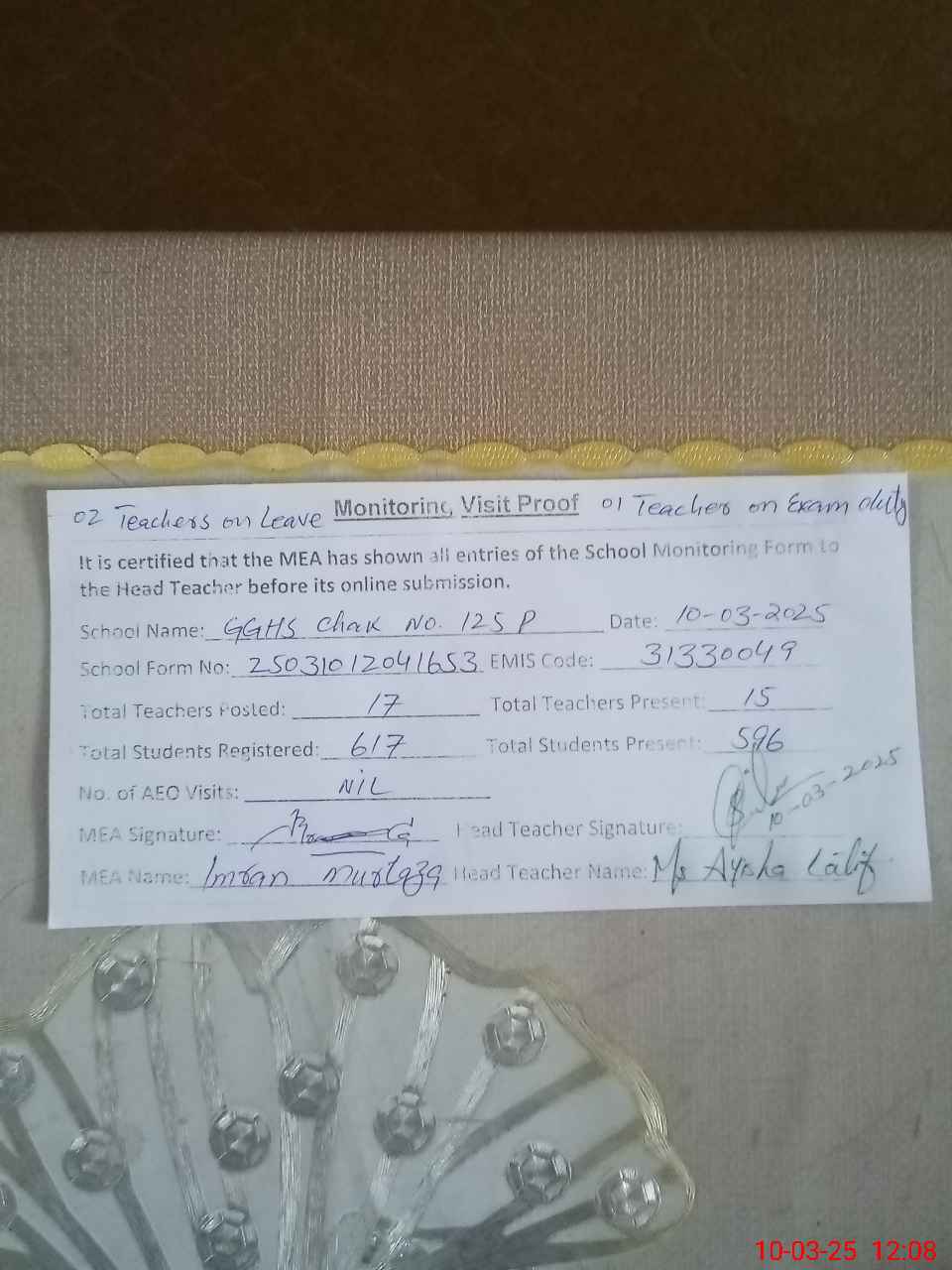 | EMIS Code: 31330049 | Name of School: GGHS CHAK NO. 125/P | |||