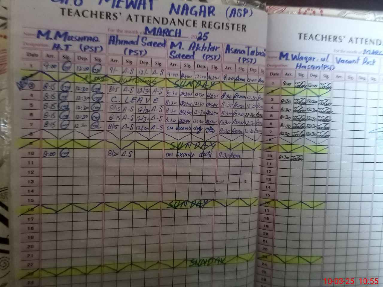 | 36**** | Mu**** Ak**** Sa**** | PST | Regular | 0 | 0 | 0 | 0 | 0 | 0 | 0 | 0 | 0 | Exam Duty |