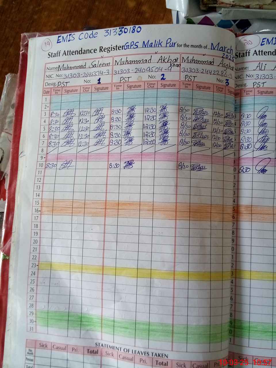 | CNIC | Full Name | Designation | R/C | Absence During Last Calender Month |