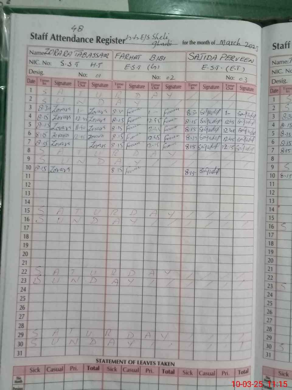 | Leave | Duty | Absent | Maternity | Medical | Ex- Pak |